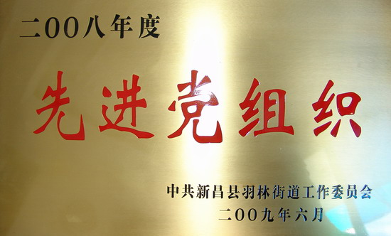 公司被授予2008年度先进党组织称呼