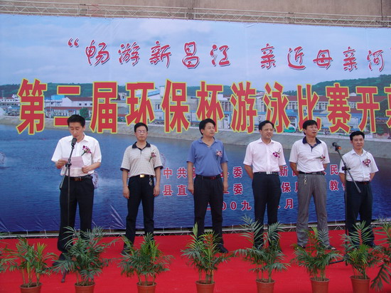 8月19日, ,, ,,,,由中共新昌县委、新昌县人民政府主理, ,, ,,,, 中共新昌县直属机关事情委员会、新昌县环保局、新昌县教育体育局承办的“畅游新昌江、亲近母亲河”新昌县第二届“环保杯”游泳角逐在新昌江城东大桥上方江面举行。。。 。。。。