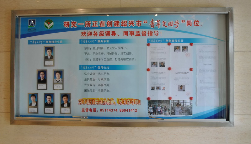 11月23日,,,,,研究一所接受了绍兴市“青年文明号”检查组2011年在争创的“市级青年文明号”的验收。。。。。。