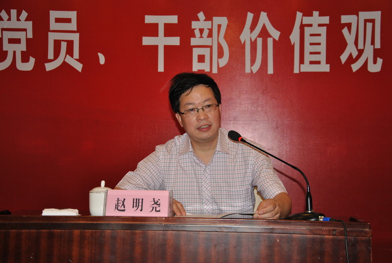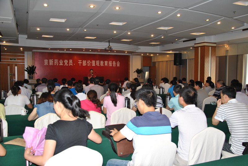 6月17日,,,,,,公司党委在鹤群大旅馆八楼天姥厅组织了一次主题为“党员、干部价值观教育”报告会。。 。 。。报告由县直机关党工委书记赵明尧主讲。。 。 。。公司新昌基地全体党员和中高层管理干部近70人加入了报告会。。 。 。。