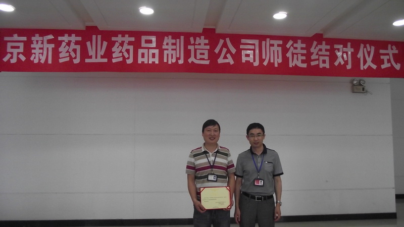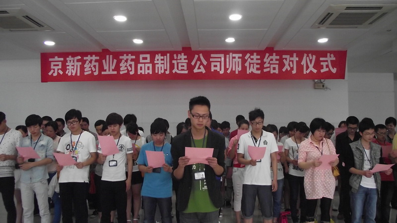 结对仪式上,,,,,,,,药品制造公司总司理陈绍碧向被聘为车间各个岗位的师傅揭晓聘用证书,,,,,,,,并向通过审核的师傅授予津贴奖。。。。。。新员们逐一上台宣读誓言,,,,,,,,表达了自己虚心讨教、永求上进的刻意。。。。。。