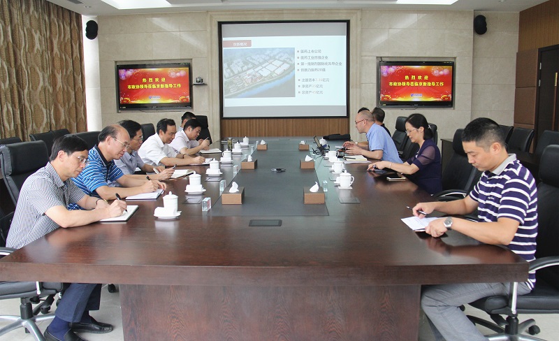 8月31日上午,,,,,,, ,市政协副主席陈国阳向导市政协社法委、市发改委、市经信委等向导莅临公司调研指导事情。。。。 。。公司总司理王能能热情接待了陈副主席一行。。。。 。。