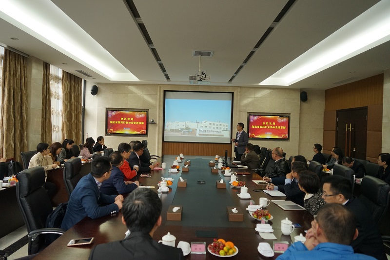 11月28日,,,,,,,湖北省医药行业协会副会长、葵花药业集团(襄阳)隆中有限公司总司理黄正军,,,,,,,协会副会长、武汉福星生物药业有限公司总司理赵复勋,,,,,,,协会秘书长、九州通医药集团股份有限公司党委副书记程波涛,,,,,,,协会理事、湖北神农本草中药饮片有限公司董事长张文明等携湖北医药行业协会成员认真人30余人走进新宝gg创造奇迹,,,,,,,公司总司理王能能、常务副总司理金志平热情接待。。。。。。。